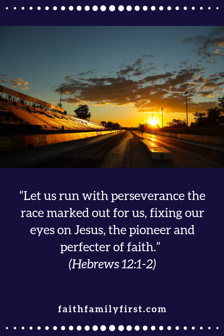 “Let us run with perseverance the race marked out for us, fixing our eyes on Jesus, the pioneer and perfecter of faith.” (Hebrews 12:1-2)