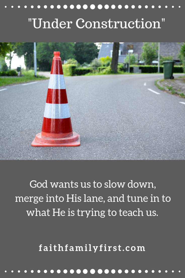 God places us in “construction zones” for a reason. It’s during these times that we learn to truly rely on Him and to humble ourselves. He wants us to slow down, merge into one lane (His lane), and tune in to what He is trying to teach us in the moment.