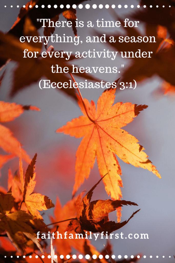 The trees are finally changing in Texas, heralding the Fall season. It reminds me of the “seasons” passage in Ecclesiastes 3 where it says, “There is a time for everything, and a season for every activity under the heavens.”