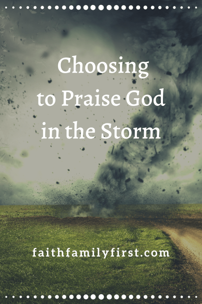 If you’re in a storm right now… whatever storm it may be… I encourage you to choose to praise God and to turn to God. It doesn’t have to be a joyful praise. It can be a cry of anguish. A cry for help. Letting God know that you need Him, that you need His strength, and that you can’t go through this storm on your own.